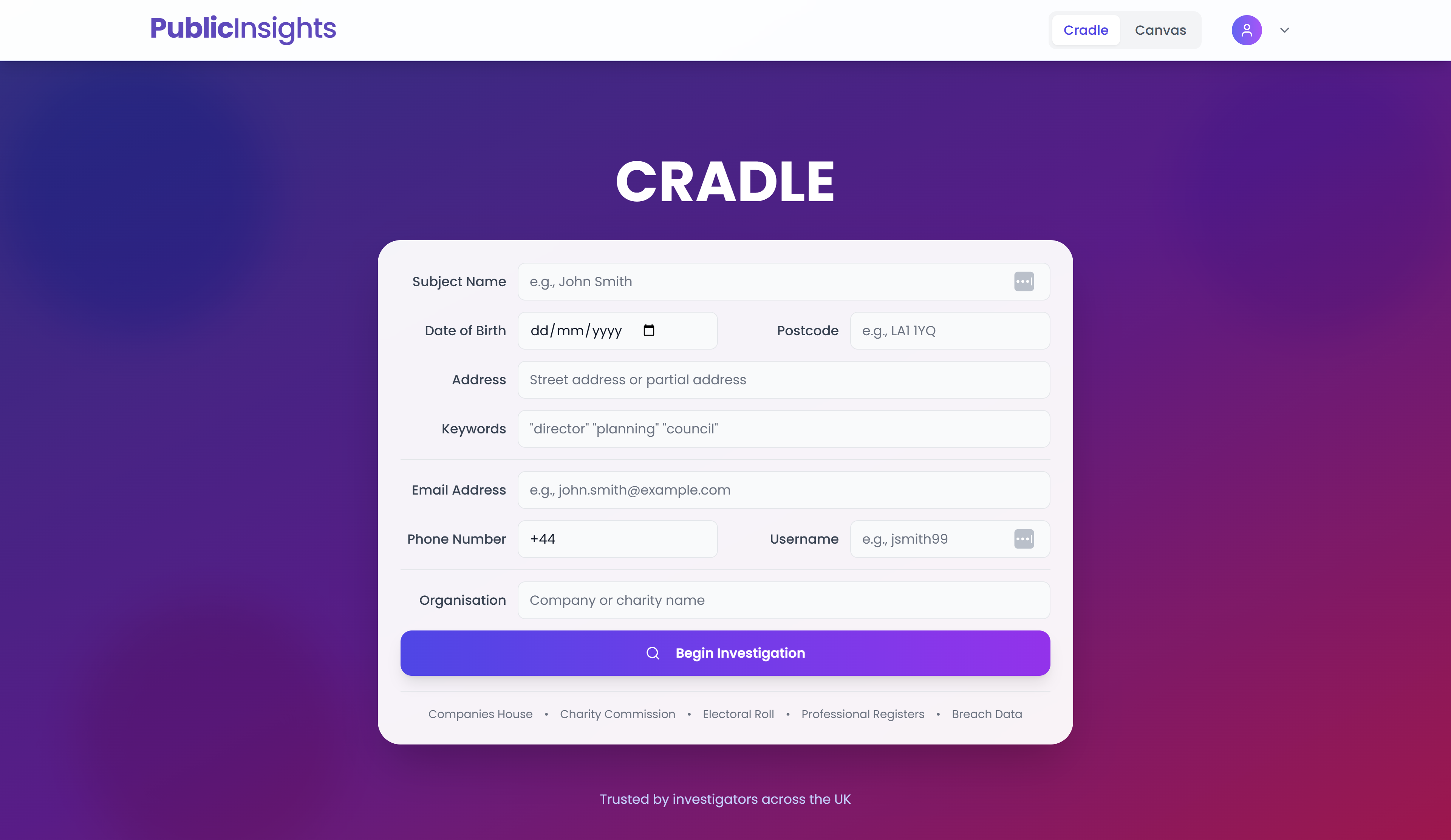 Using Multiple Public Data Sources for UK Investigations: Celebrity Case Study